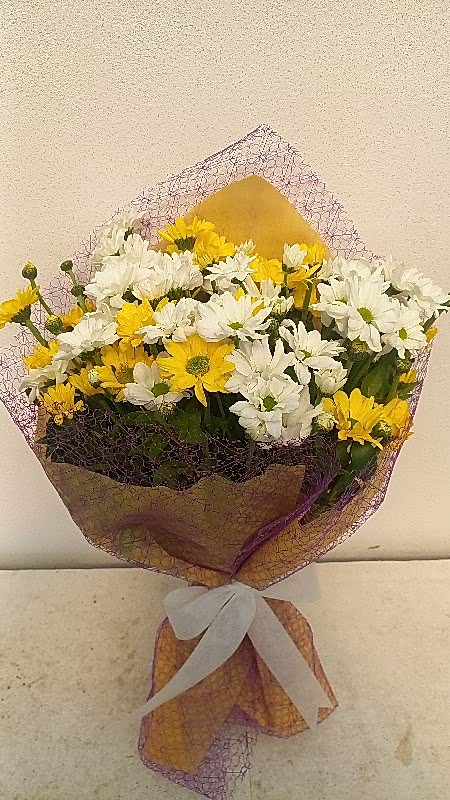 Sar� ve beyaz papatyalardan olu�an buketimiz.